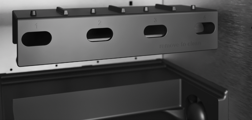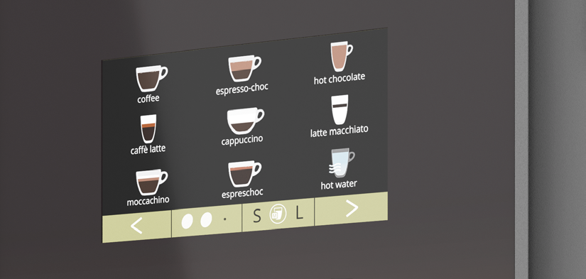 The beverage selection screen automatically switches between cups or decanters based on the position of the flippable cup tray.